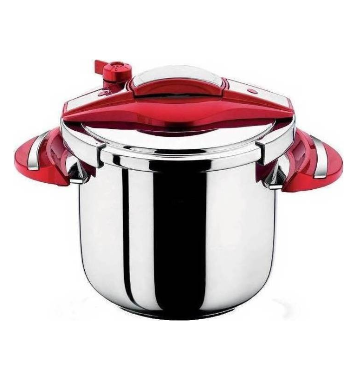 Xύτρα ταχύτητας σχ.”VENUS”, άψογα εργονομικά σχεδιασμένη από ατόφιο ατσάλι 18/10 και πάτο τεχνολογίας capsul bottom (σάντουιτς) με αλουμίνιο ( για σωστή διάχυση της θερμοκρασίας), πάχους 8mm. Κατάλληλη για όλες τις εστίες μαγειρέματος & με 75% μικρότερη κατανάλωση ενέργειας. Με λειτουργική ασφαλή χρήση & πανεύκολο άνοιγμα-κλείσιμο του καπακιού με ένα μοχλό-κουμπί. Διαθέτει βαλβίδα πίεσης ατμού 2 θέσεων & επιλογή αποσυμπίεσης. Επίσης εξτρά βαλβίδα (ασφαλείας) αποσυμπίεσης, καθώς και υψηλής ποιότητος εσωτερικό λάστιχο (δαχτυλίδι), απο σιλικόνη ανωτέρας ποιότητας. Ολα τα είδη της χύτρας ταχύτητος είναι κατάλληλα στη χρήση πλυντηρίου πιάτων.