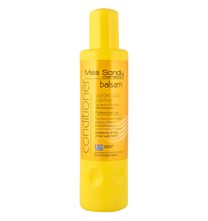 Conditioner για προστασία χρώματος της Miss Sandy, κατάλληλο για βαμμένα μαλλιά, σε μορφή κρέμας. Διατηρεί και παρατείνει τη ζωντάνια του χρώματος στα μαλλιά, ενώ παράλληλα εμποδίζει το ξεθώριασμά τους. Η σύνθεσή του βοηθάει στην εξουδετέρωση των ανεπιθύμητων κίτρινων τόνων που εμφανίζονται στα γκρίζα, λευκά ή πλατινένια μαλλιά.
