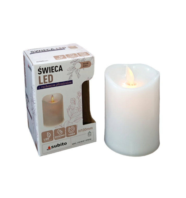 Το κερί έχει τα πλεονεκτήματα ενός κεριού – χωρίς τα μειονεκτήματά του! Το κερί τροφοδοτείται από μπαταρίες – διαρκεί έως και 80 ημέρες με ένα σετ μπαταριών. Επαναχρησιμοποιήσιμο προϊόν (απλή αντικατάσταση μπαταρίας).