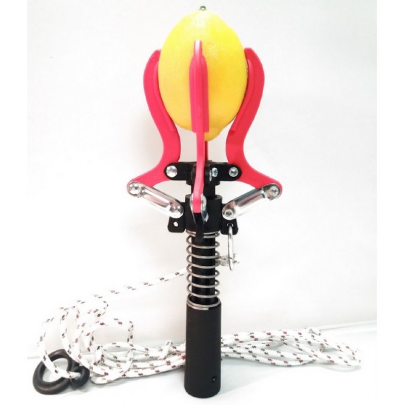 Φρουτοσυλλέκτης με υποδοχή για τηλεσκοπικό κοντάρι, με σχοινί χειρισμού. Κατάλληλος για συλλογή φρούτων, όπως μήλα, πορτοκάλια, λεμόνια, ρόδια, αβοκάντο, κυδώνια, καρύδια, κλπ. Χρησιμοποιείται σε ψηλά δέντρα και δύσκολα σημεία συλλογής καρπών. Τραβώντας το σχοινί, ανοίγουν οι πλαστικές δαγκάνες και ”πιάνουν” τα φρούτα. Μετά περιστρέφουμε τον καρποσυλλέκτη για να κοπεί ο καρπός από το δέντρο και ανοίγοντας πάλι τις δαγκάνες ελευθερώνεται ο καρπός. Ειναι Ελληνικό προιόν με τρία χρόνια εγγύηση. Διατίθεται μόνο του ή με τηλεσκοπικό κοντάρι αλουμινίου 3 m.