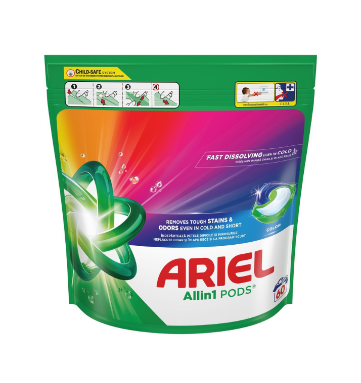 Οι κάψουλες για πλύσιμο ρούχων Ariel All-in-1 PODS προσφέρουν τέλεια αφαίρεση λεκέδων, από την 1η πλύση, ακόμη και σε χαμηλότερες θερμοκρασίες. Προσφέρουν εξαιρετική καθαριότητα με μία μόνο κάψουλα: 1. Αφαιρούν τους λεκέδες 2. Παρέχουν Υγιεινή καθαριότητα 3. Προσφέρουν φρεσκάδα 4. Προστατεύουν τα υφάσματα 5. Εξαιρετικές σε χαμηλότερες θερμοκρασίες. Οι κάψουλες πλυντηρίου Ariel διαθέτουν ένα μοναδικό σχεδιασμό με πολλά τμήματα, που διατηρούν τα συστατικά τους σταθερά και διαχωρισμένα μέχρι να ξεκινήσει η διαδικασία της πλύσης. Όταν έρθει σε επαφή με το νερό, η μεμβράνη διαλύεται απελευθερώνοντας προηγμένη τεχνολογία αφαίρεσης λεκέδων, προσφέροντας τη βαθύτερη και ισχυρότερη καθαριότητα που είχε ποτέ.